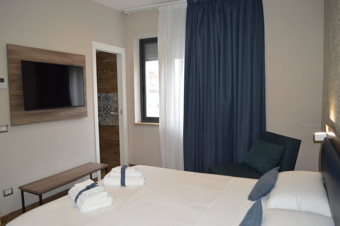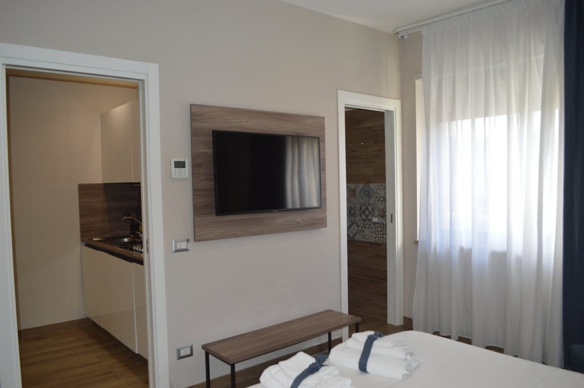Soluzione indipendente con letto matrimoniale completo di biancheria, cassetta di sicurezza, TV LCD, aria condizionata autonoma.